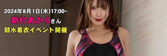 新村あかりさん競水着イベント開催 開催日時:2024年8月1日(木)17:00~ 開催場所:アリババ秋葉原店 イベント詳細はこちらのURLからhttps://av-event.jp/event/32022/